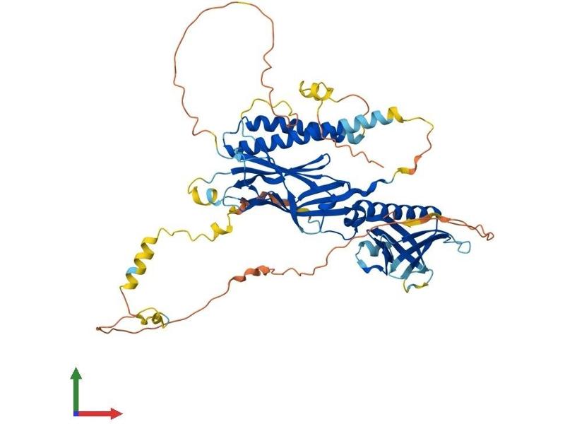 This gene encodes a scaffold protein that interacts with GTP-bound Rho proteins. Binding of this protein inhibits the GTPase activity of Rho proteins. This protein may interfere with the conversion of active, GTP-bound Rho to the inactive GDP-bound form by RhoGAP. Rho proteins regulate many important cellular processes, including cytokinesis, transcription, smooth muscle contraction, cell growth and transformation. Dysregulation of the Rho signal transduction pathway has been implicated in many forms of cancer. Alternative splicing results in multiple transcript variants encoding different isoforms. [provided by RefSeq, Jul 2008].