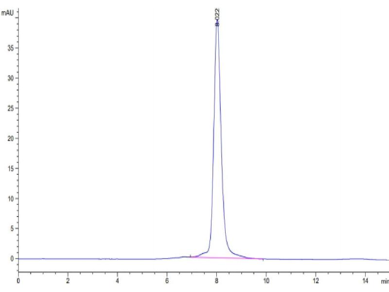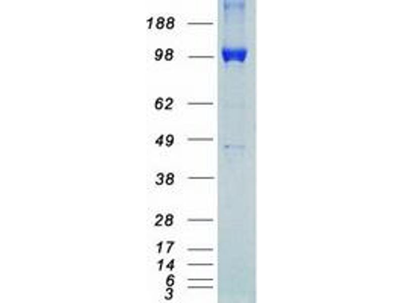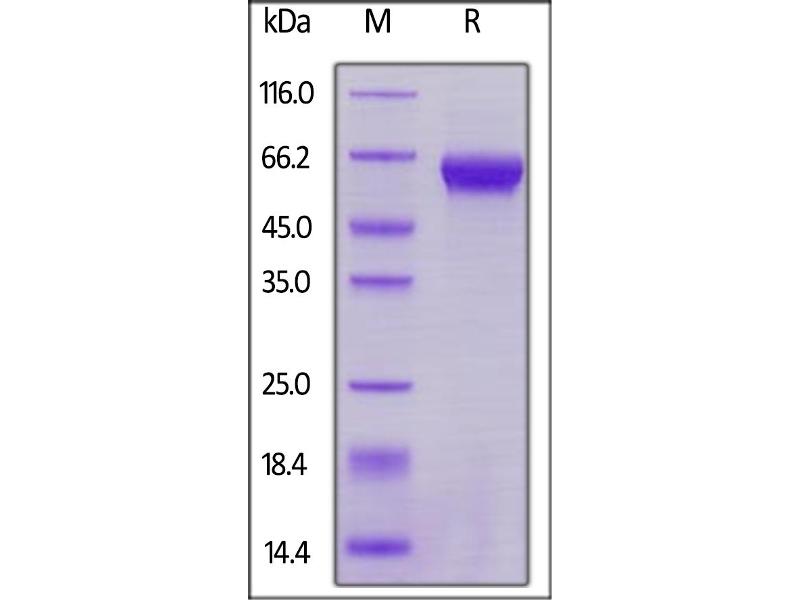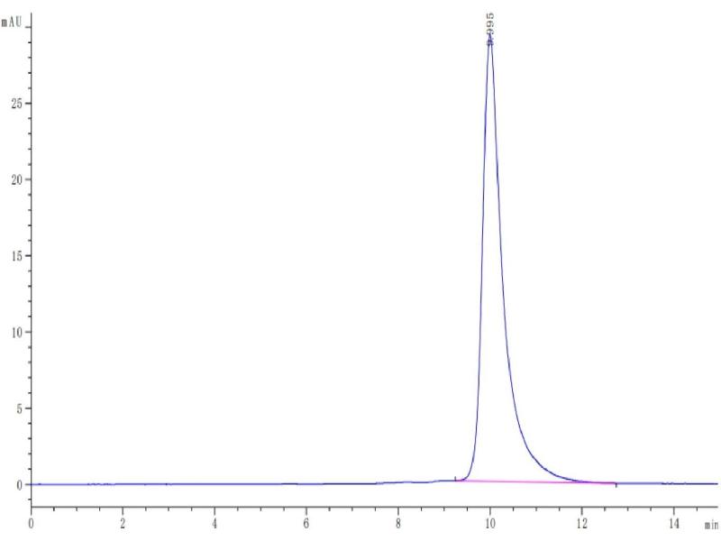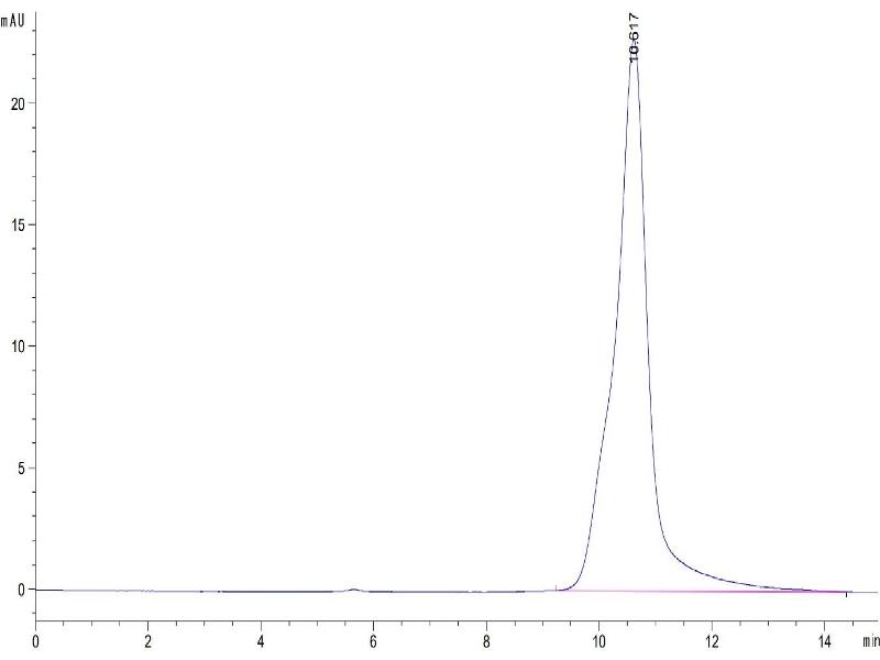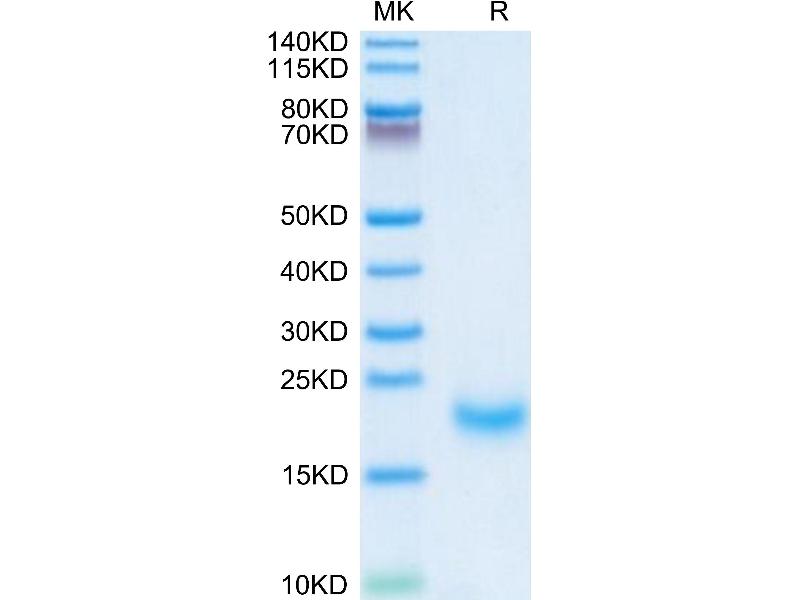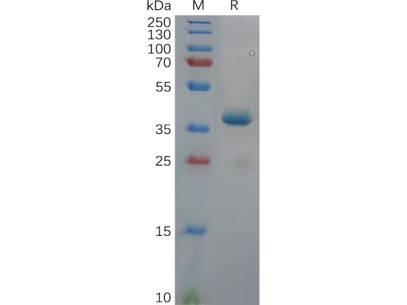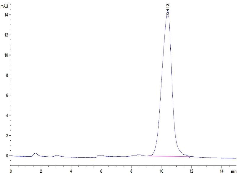 The purity of the protein is greater than 95 % as determined by SDS-PAGE and Coomassie blue staining.