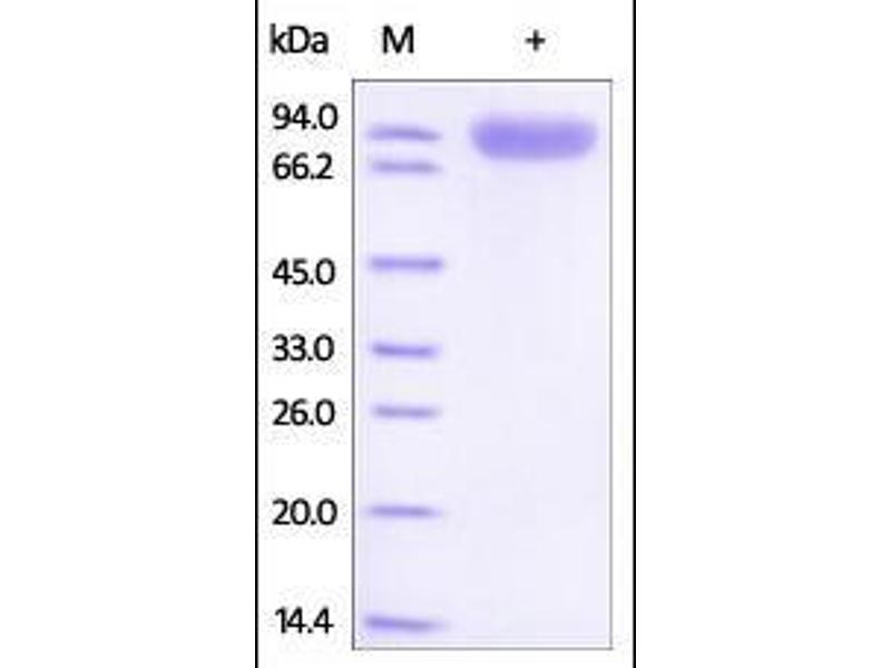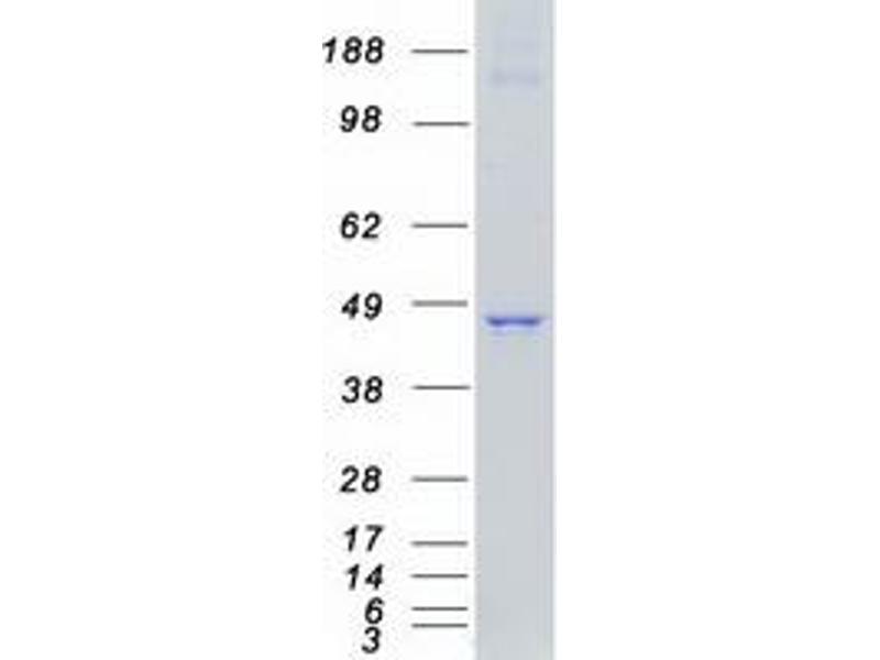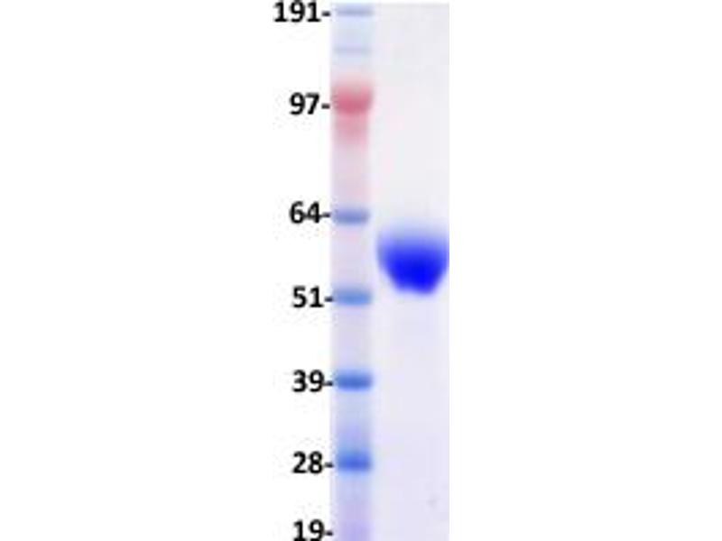 The purity of the protein is greater than 95 % as determined by SDS-PAGE and Coomassie blue staining.