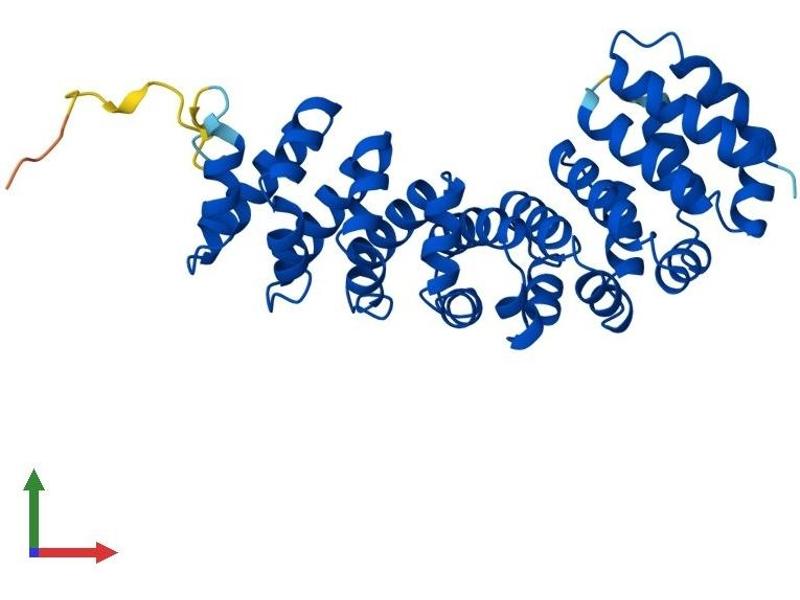 This gene encodes a protein with no known function but with slight similarity to a yeast vacuolar protein. The gene is located in a region deleted in pediatric rhabdoid tumors of the brain, kidney and soft tissues, but mutations in this gene have not been associated with the disease. [provided by RefSeq, Jul 2008].