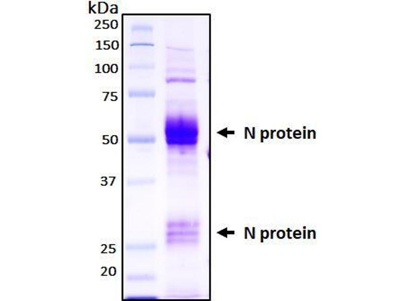 SARS-CoV-2 N Spezies: Coronavirus (CoV) Wirt: Escherichia coli (E. coli) Recombinant Greater than 90 % as determined by SDS-PAGE. WB, ELISA