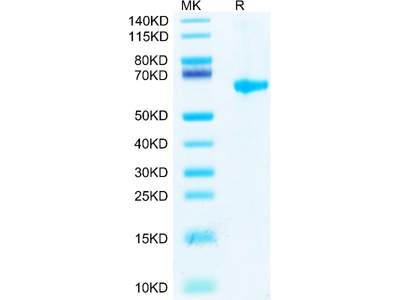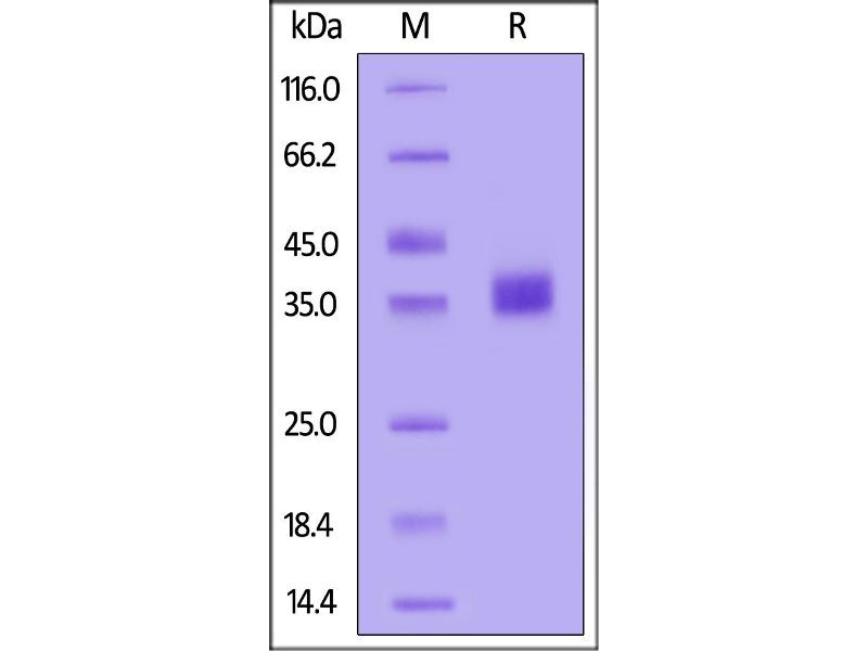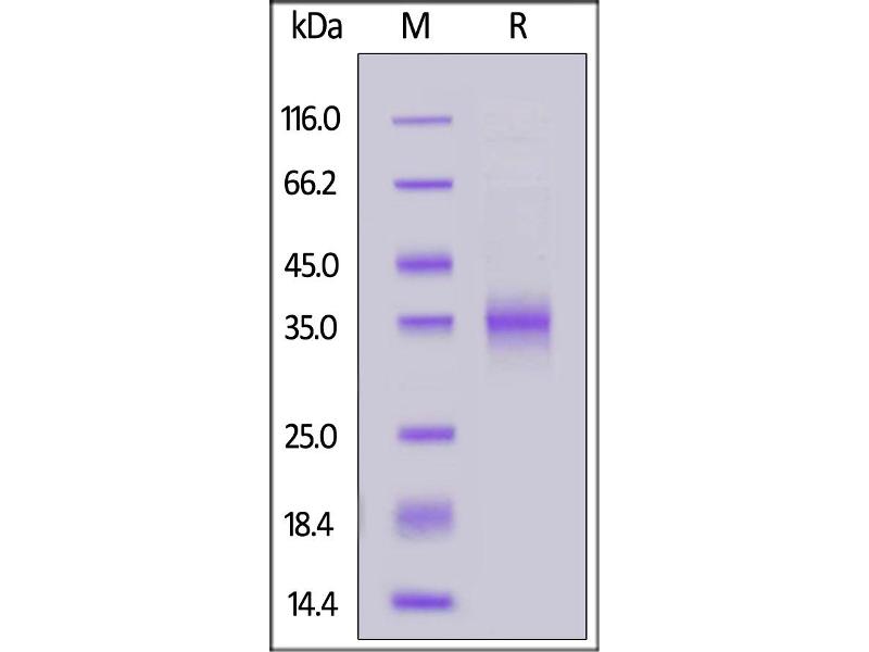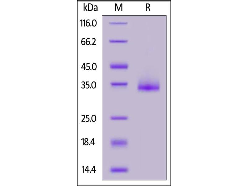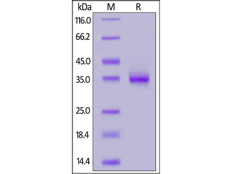 The purity of the protein is greater than 95 % as determined by SDS-PAGE and Coomassie blue staining.