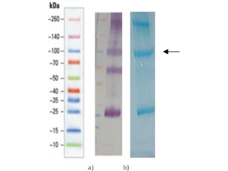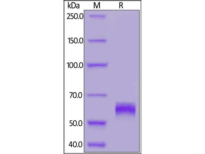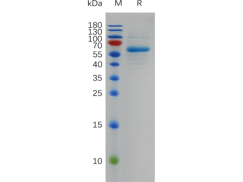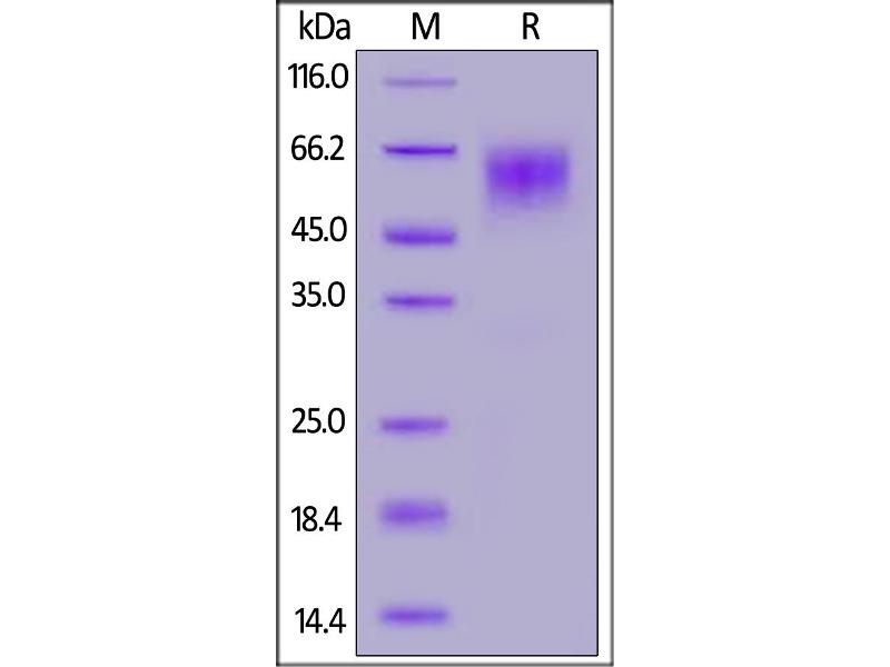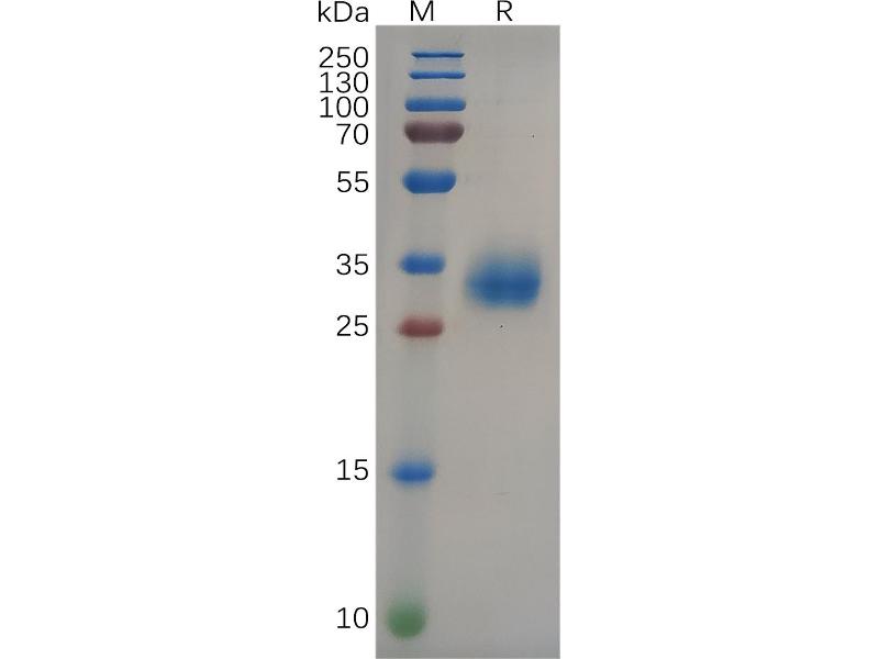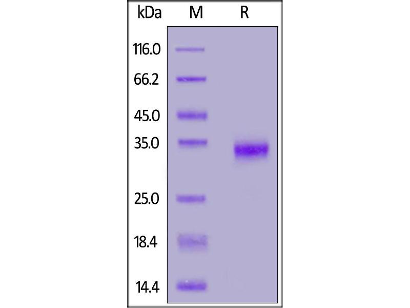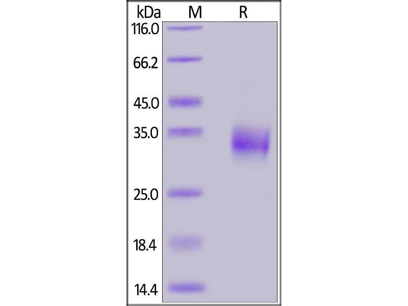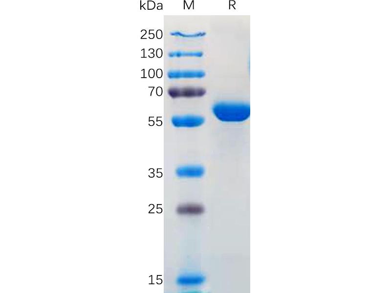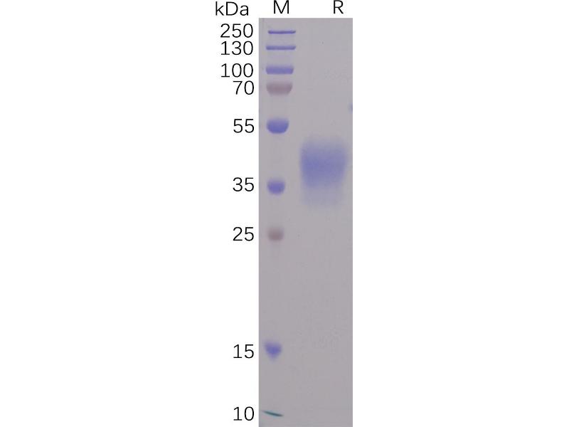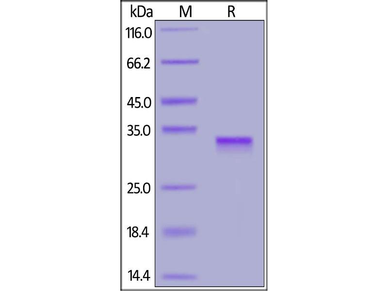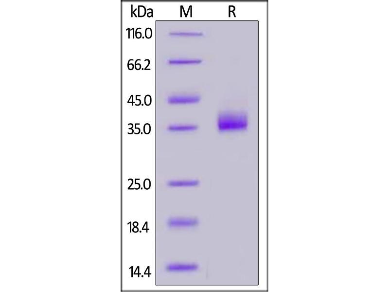 The purity of the protein is greater than 95 % as determined by SDS-PAGE and Coomassie blue staining.