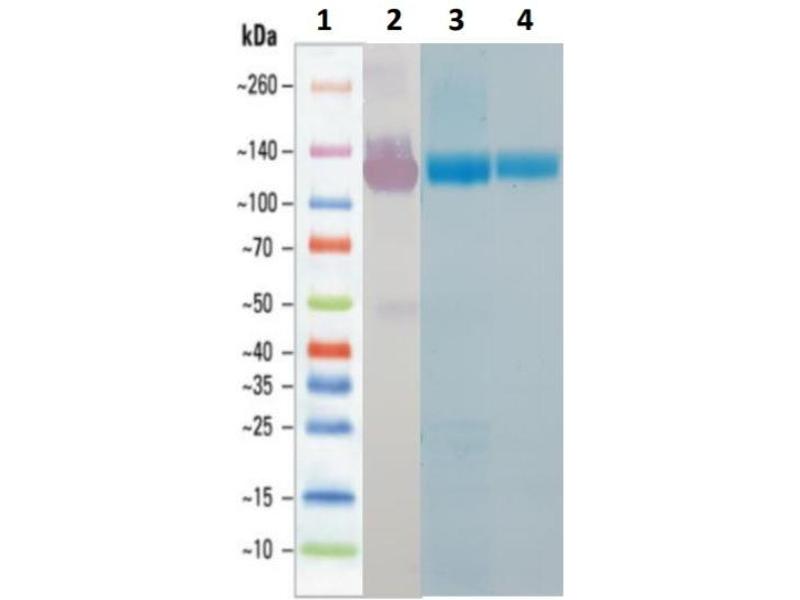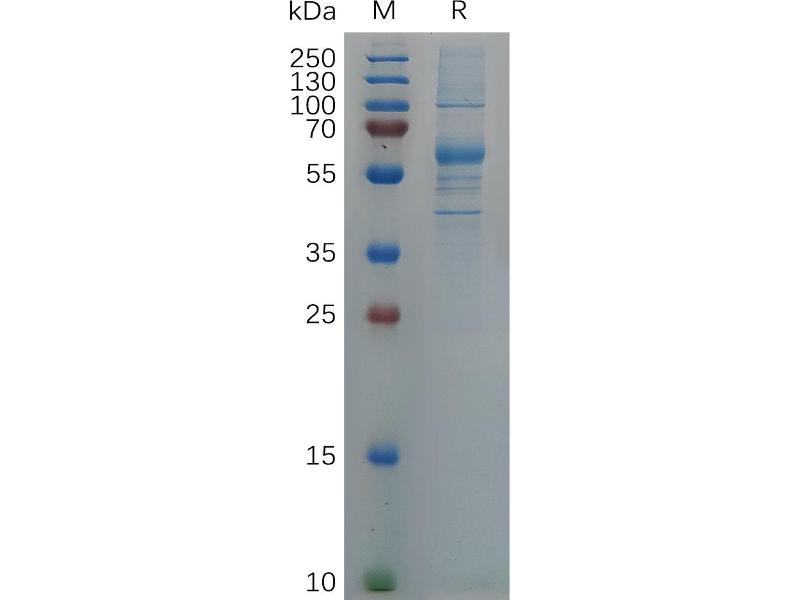 The purity of the protein is greater than 85 % as determined by SDS-PAGE and Coomassie blue staining.