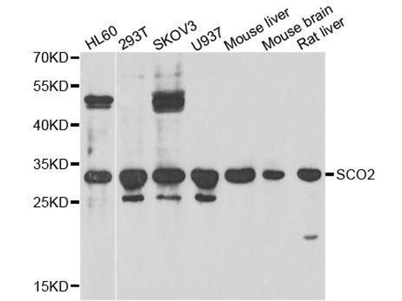 SCO cytochrome oxidase deficient homolog 2 (yeast) (SCO2) AntikörperSCO2 cytochrome c oxidase assembly protein (Sco2) Antikörper