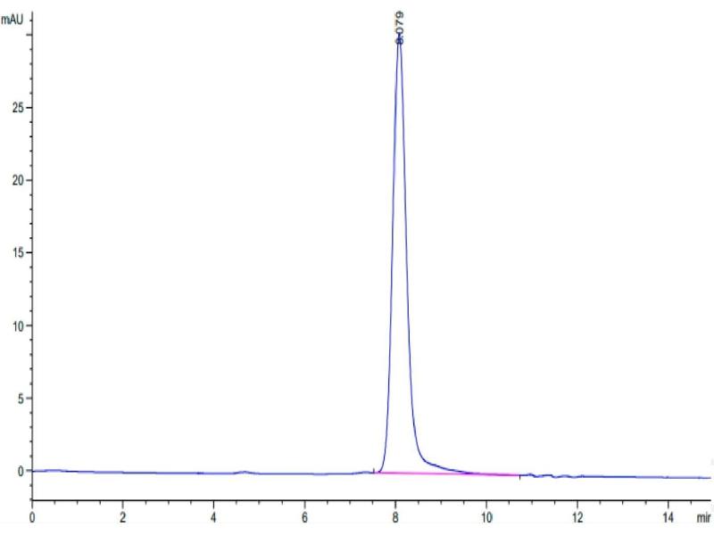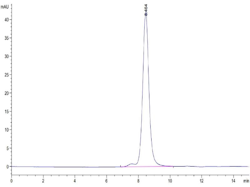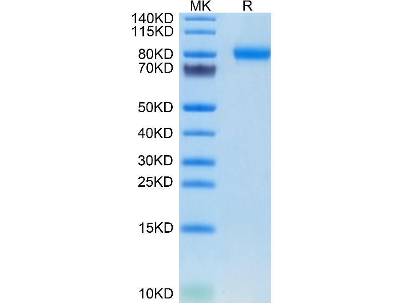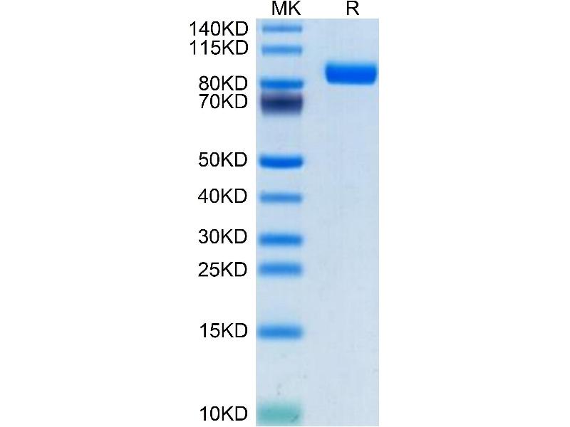 The purity of the protein is greater than 85 % as determined by SDS-PAGE and Coomassie blue staining.