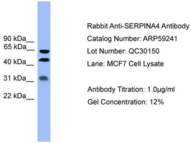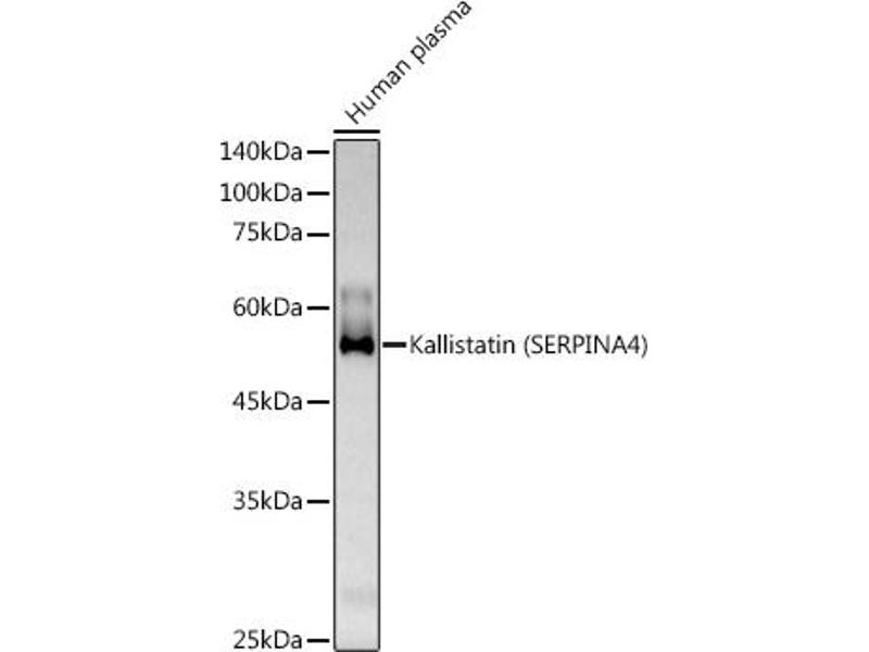 : "Polymorphisms at the F12 and KLKB1 loci have significant trait association with activation of the renin-angiotensin system." in: BMC medical genetics, Vol. 17, pp. 21, (2016) (PubMed).Aliase für SERPINA4 Antikörper