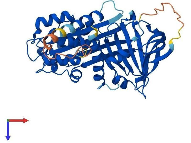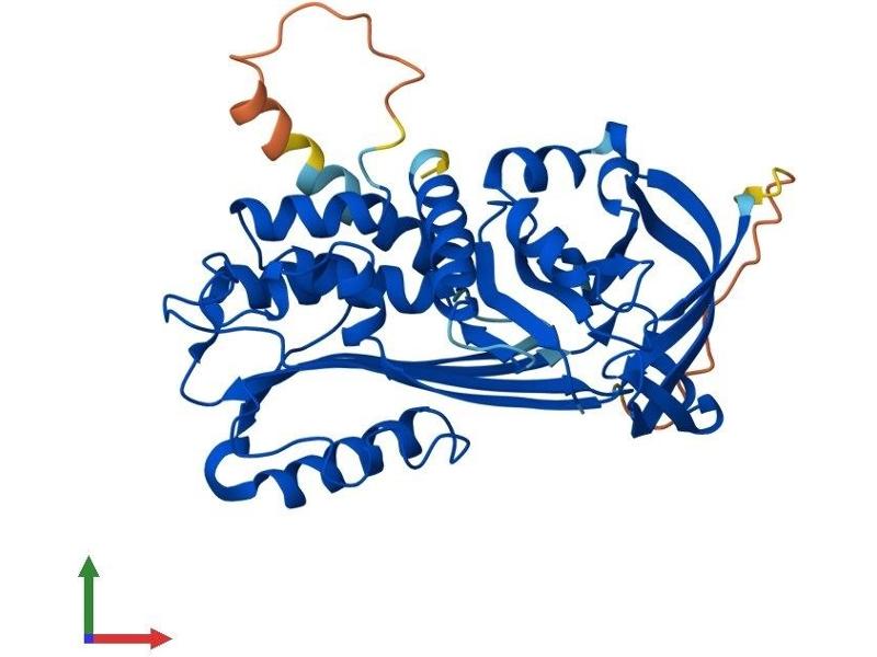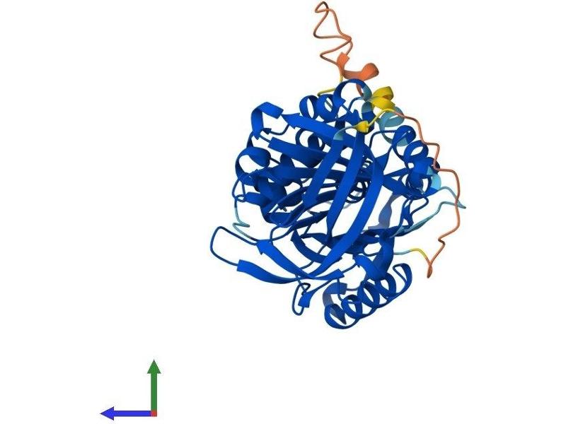 The superfamily of high molecular weight serine proteinase inhibitors (serpins) regulate a diverse set of intracellular and extracellular processes such as complement activation, fibrinolysis, coagulation, cellular differentiation, tumor suppression, apoptosis, and cell migration. Serpins are characterized by a well-conserved tertiary structure that consists of 3 beta sheets and 8 or 9 alpha helices (Huber and Carrell, 1989 [PubMed 2690952]). A critical portion of the molecule, the reactive center loop connects beta sheets A and C. Protease inhibitor-10 (PI10\; SERPINB10) is a member of the ov-serpin subfamily, which, relative to the archetypal serpin PI1 (MIM 107400), is characterized by a high degree of homology to chicken ovalbumin, lack of N- and C-terminal extensions, absence of a signal peptide, and a serine rather than an asparagine residue at the penultimate position (summary by Bartuski et al., 1997 [PubMed 9268635]).[supplied by OMIM, Jan 2010].