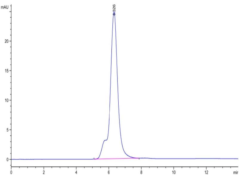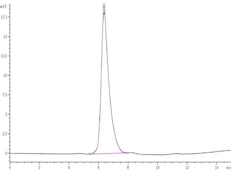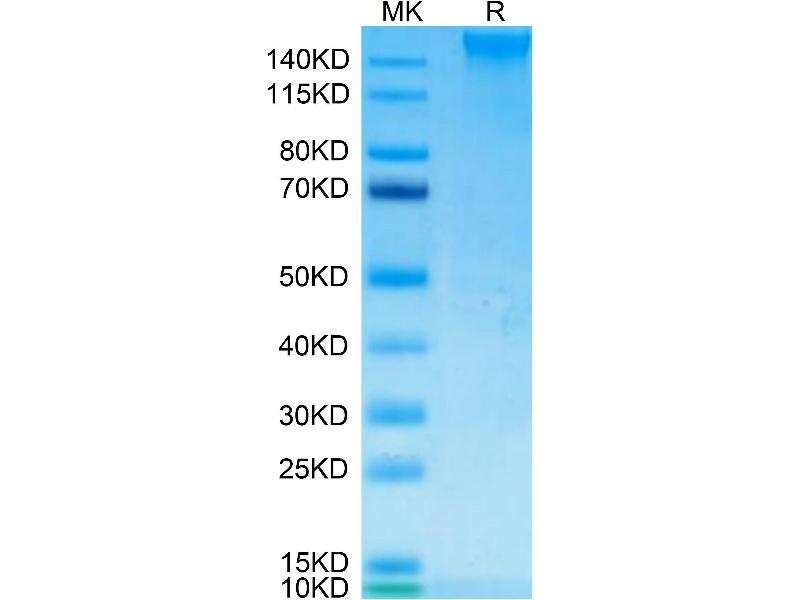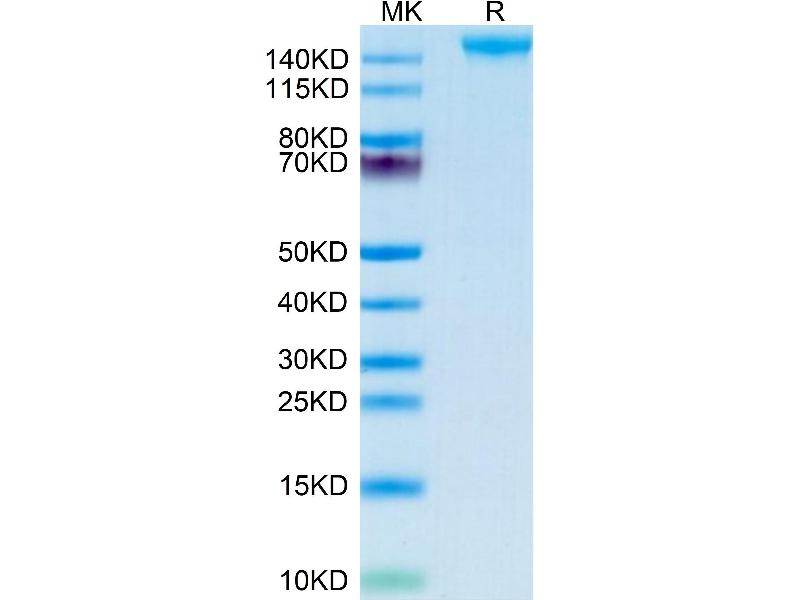 The purity of the protein is greater than 80 % as determined by SDS-PAGE and Coomassie blue staining.