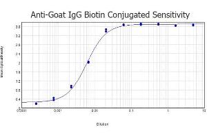 - Application Note: Anti-Goat IgG Biotin Conjugated Antibody has been tested by ELISA and Dot blot and is suitable for immunoblotting (western or dot blot), ELISA, immunoelectron microscopy and immunohistochemistry as well as other antibody-based enzymatic assays requiring lot-to-lot consistency. Immunohistochemistry Dilution: 1:1,000 - 1:5,000 Western Blot Dilution: 1:2,000 - 1:10,000 ELISA Dilution: 1:200,000 - 1:250,000 Other: User Optimized