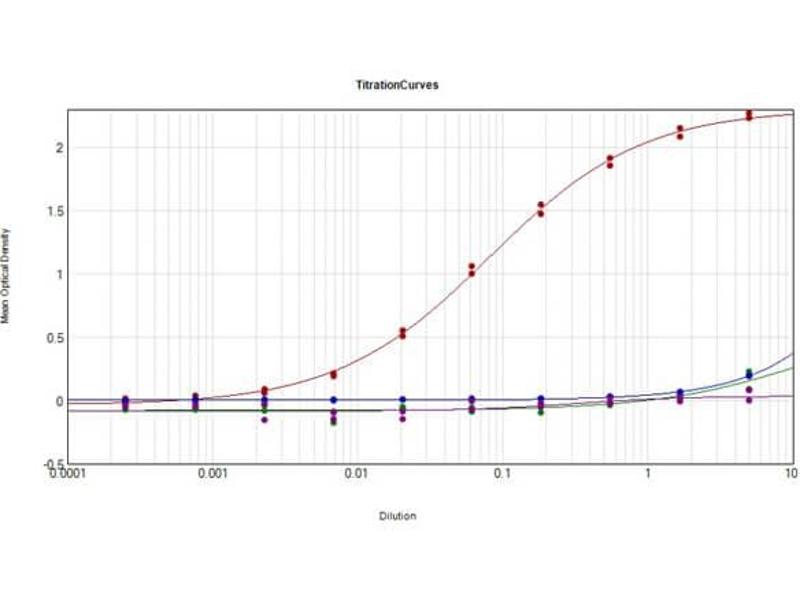 - Minimal crossreactivity against Bv Ch Gt GP Ham Hs Hu Rb Rt & Sh Serum Proteins Assay by immunoelectrophoresis resulted in a single precipitin arc against anti-Goat Serum, Mouse IgG and Mouse Serum. No reaction was observed against Bovine, Chicken, Goat, Guinea Pig, Hamster, Horse, Human, Rabbit, Rat and Sheep Serum Proteins. Specificity was confirmed by ELISA at less than 1 % of target signal.
