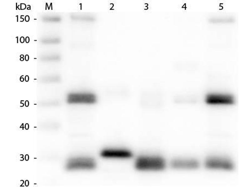 - Assay by immunoelectrophoresis resulted in a single precipitin arc against anti-Peroxidase, anti-Goat Serum, Rat IgG and Rat Serum.