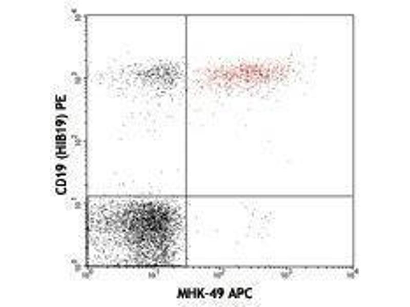 The MHK-49 antibody reacts with both soluble and membrane human immunoglobulin light chain kappa (κ). It does not react with human immunoglobulin light chain lambda (λ) or heavy chain (μ). The MHK-49 antibody can be used as primary or secondary reagent for immunofluorescent staining or ELISA analysis.