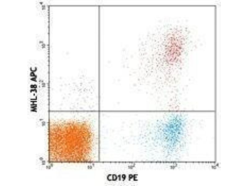 The MHL-38 antibody reacts with both soluble and membrane human immunoglobulin light chain lambda (λ). It does not react with human immunoglobulin light chain kappa (κ) or heavy chain (μ). The MHL-38 antibody can be used as primary or secondary reagent for immunofluorescent staining or ELISA analysis.