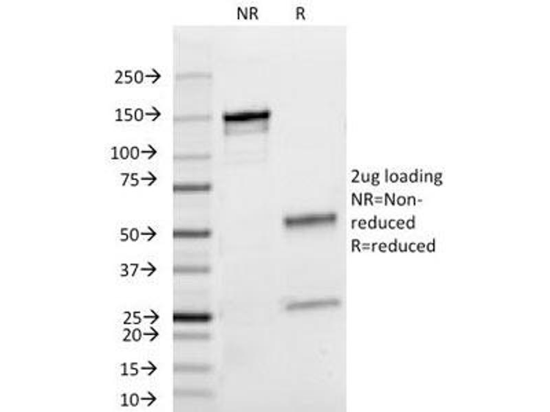 2. The prediluted format is supplied in a dropper bottle and is optimized for use in IHC. After epitope retrieval step (if required), drip mAb solution onto the tissue section and incubate at RT for 30 min.\. Flow Cytometry: 0.5-1 μg/million cells in 0.1ml,Immunofluorescence: 1-2 μg/mL,Western blot: 0.5-1 μg/mL,Immunohistochemistry (FFPE): 0.25-0.5 μg/mL for 30 minutes at RT (1),Prediluted format : incubate for 30 min at RT (2) -