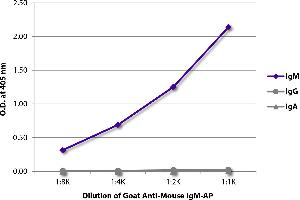 Source: Pooled antisera from goats hyperimmunized with mouse IgM paraproteins. To insure lot-to-lot consistency, each batch of product is tested by ELISA, PCFIA and/or flow cytometry for conformance to characteristics of a standard reference reagent.