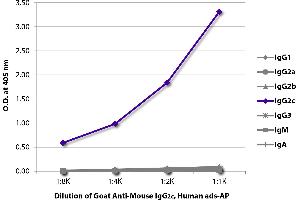 Reacts with the heavy chain of mouse IgG 2c as demonstrated by ELISA.