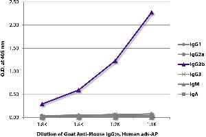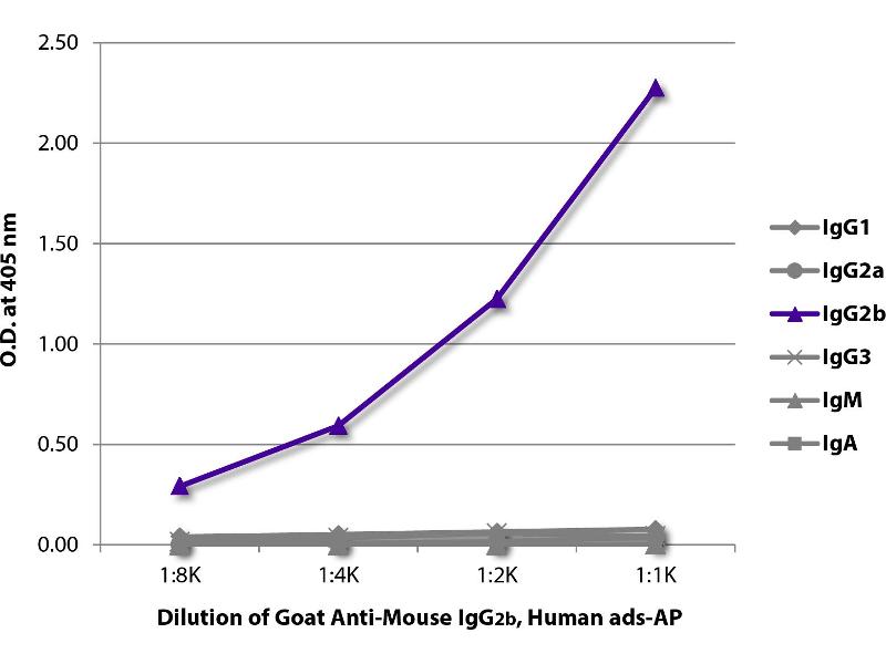 Reacts with the heavy chain of mouse IgG 2b as demonstrated by ELISA and flow cytometry.