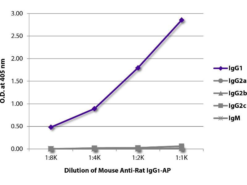 Reacts with the gamma 1 heavy chain (Fc) of Rat IgG1.