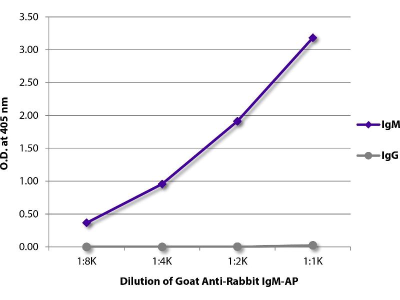 Reacts with the heavy chain of rabbit IgM as demonstrated by ELISA.