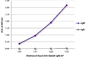 Source: Pooled antisera from goats hyperimmunized with normal rabbit IgM To insure lot-to-lot consistency, each batch of product is tested by ELISA, PCFIA and/or flow cytometry for conformance to characteristics of a standard reference reagent.