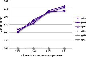Working Dilutions: Flow Cytometry FITC and BIOT conjugates 1 g/106 cells PE conjugate 0.2 g/106 cells For flow cytometry, the suggested use of these reagents is in a final volume of 100 L ELISA AP conjugate 1:1,000 - 1:2,000 HRP conjugate 1:4,000 - 1:8,000 BIOT conjugate 1:5,000 - 1:10,000 FLISA FITC conjugate 1:200 - 1:400 PE conjugate 1 g/mL