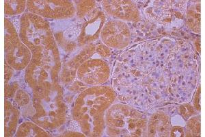 Reacts with the heavy and light chains of goat IgG as demonstrated by ELISA.