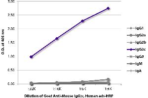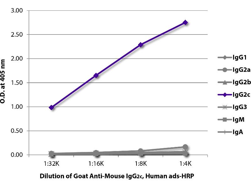 Reacts with the heavy chain of mouse IgG 2c as demonstrated by ELISA.