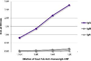 Source: Papain digest of goat anti-human IgG. To insure lot-to-lot consistency, each batch of product is tested by ELISA and/or flow cytometry for conformance to characteristics of a standard reference reagent.