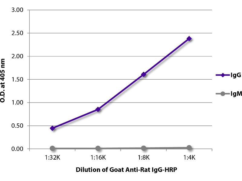 Reacts with the heavy chain of rat IgG as demonstrated by ELISA.