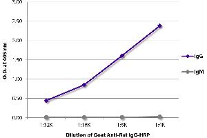 Source: Pooled antisera from goats hyperimmunized with normal rat IgG To insure lot-to-lot consistency, each batch of product is tested by ELISA, PCFIA and/or flow cytometry for conformance to characteristics of a standard reference reagent.