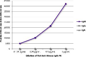 Working Dilutions: Flow Cytometry FITC and BIOT conjugates 1.0 g/106 cells PE, APC, and PE/CY7 conjugates 0.1 g/106 cells For flow cytometry, the suggested use of these reagents is in a final volume of 100 L ELISA AP conjugate 1:1,000 - 1:2,000 HRP conjugate 1:4,000 - 1:8,000 BIOT conjugate 1:5,000 - 1:20,000 FLISA FITC conjugate 1:200 - 1:400 AF555 conjugate 1:100 - 1:400 PE and APC conjugates 1 g/mL