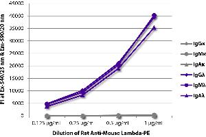 Working Dilutions: Flow Cytometry FITC and BIOT conjugates 1 g/106 cells PE conjugate 0.2 g/106 cells For flow cytometry, the suggested use of these reagents is in a final volume of 100 L ELISA AP conjugate 1:1,000 - 1:4,000 HRP conjugate 1:4,000 - 1:8,000 BIOT conjugate 1:5,000 - 1:10,000 FLISA FITC conjugate 1:200 - 1:400 PE conjugate 1 g/mL
