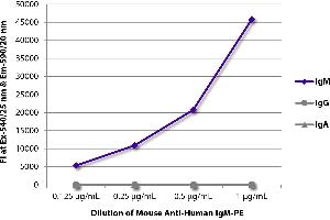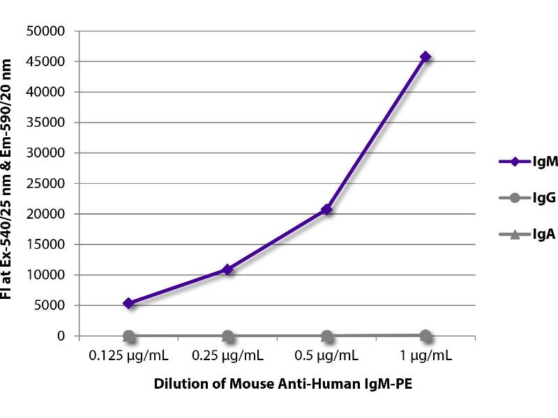 Working Dilutions: ELISA AP conjugate 1:500 - 1:1,000 HRP conjugate 1:4,000 - 1:8,000 BIOT conjugate 1:5,000 - 1:10,000 FLISA FITC conjugate 1:200 - 1:400 PE conjugate 1 g/mL Flow Cytometry Purified (UNLB) antibody 1 g/106 cells FITC and BIOT conjugates 1 g/106 cells PE and SPRD conjugates 0.1 g/106 cells For flow cytometry, the suggested use of these reagents is in a final volume of 100 L