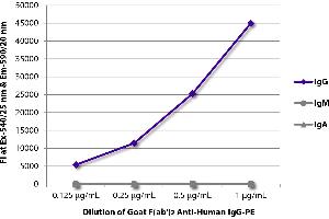 Working Dilutions: ELISA AP conjugate 1:2,000 - 1:4,000 HRP conjugate 1:4,000 - 1:8,000 BIOT conjugate 1:5,000 - 1:20,000 FLISA FITC and AF555 conjugates 1:100 - 1:400 PE conjugate 1 g/mL Flow Cytometry FITC and BIOT conjugates 1 g/106 cells PE conjugate 0.1 g/106 cells For flow cytometry, the suggested use of these reagents is in a final volume of 100 L
