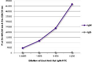 Source: Pooled antisera from goats hyperimmunized with normal rat IgM To insure lot-to-lot consistency, each batch of product is tested by ELISA, PCFIA and/or flow cytometry for conformance to characteristics of a standard reference reagent.