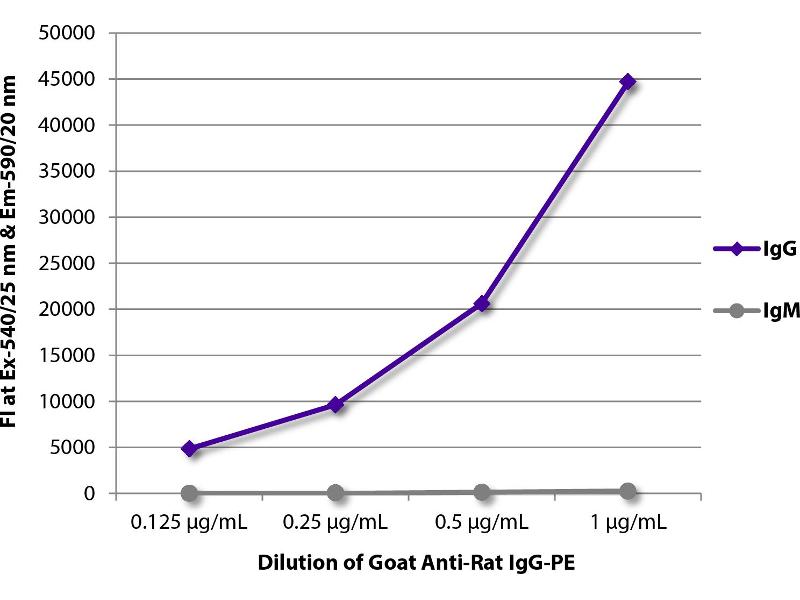 Source: Pooled antisera from goats hyperimmunized with normal rat IgG To insure lot-to-lot consistency, each batch of product is tested by ELISA, PCFIA and/or flow cytometry for conformance to characteristics of a standard reference reagent.