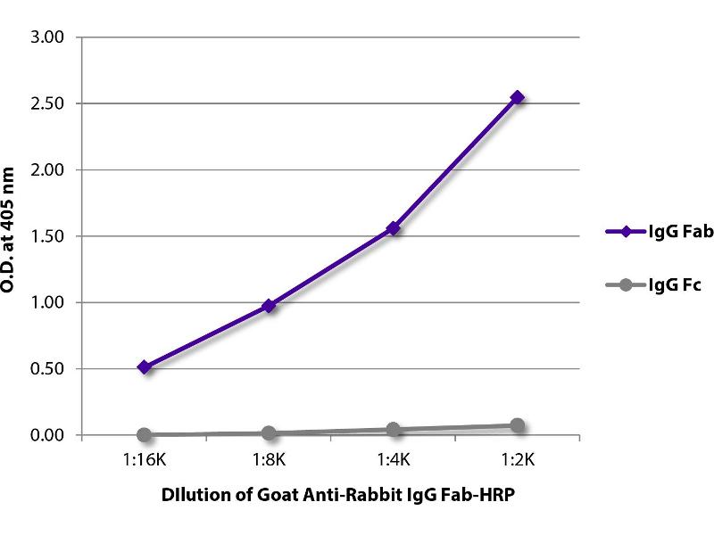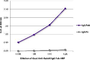 Specific to the Fab portion of rabbit IgG, may react with the light chains of other rabbit immunoglobulins. It should contain less than 1% cross to the Fc portion of rabbit IgG and other rabbit immunoglobulins. Cross reaction with immunoglobulins of other species has not been determined.