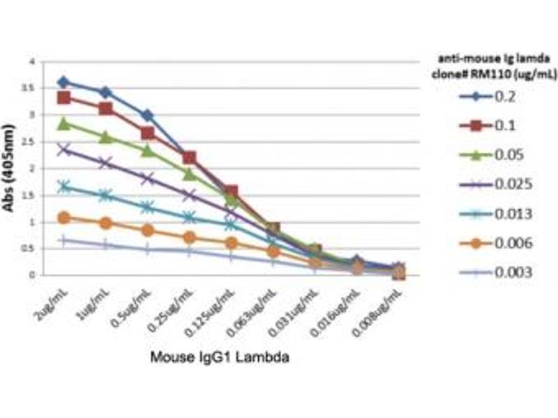 This recombinant Mouse Lambda Light Chain antibody reacts to the lambda light chain of murine immunoglobulins. No cross reactivity with the kappa chain or human/rat/goat IgG.
