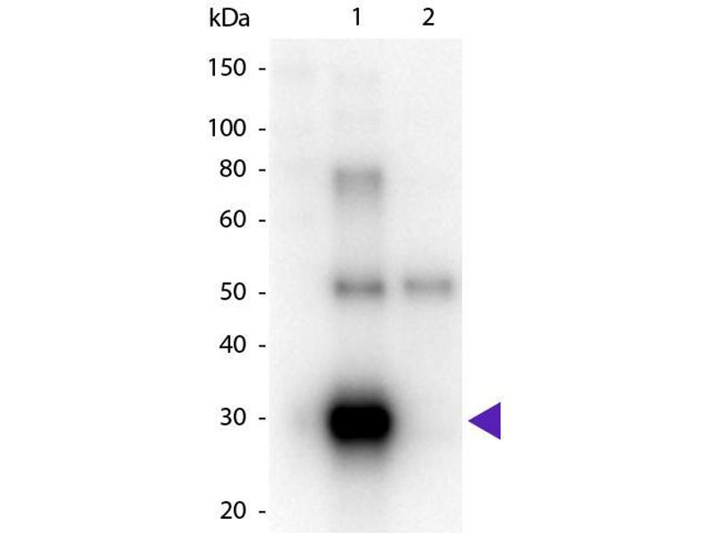 - Assay by immunoelectrophoresis resulted in a single precipitin arc against anti-Peroxidase and anti-Goat Serum. No reaction was observed against anti-Pepsin or anti-Goat IgG F(c). Specificity was confirmed by ELISA at less than 1 % cross reactivity against other human heavy or light chain isotypes.