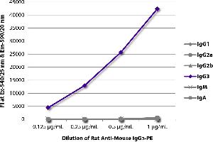 Working Dilutions: Flow Cytometry FITC and BIOT conjugates 1.0 g/106 cells PE conjugate 0.1 g/106 cells For flow cytometry, the suggested use of these reagents is in a final volume of 100 L ELISA AP conjugate 1:1,000 - 1:2,000 HRP conjugate 1:4,000 - 1:8,000 BIOT conjugate 1:5,000 - 1:20,000 FLISA FITC conjugate 1:200 - 1:400 PE conjugate 1 g/mL