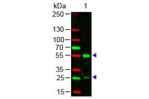 Anti-Human IgG (H&L) DyLight 549 has been tested by western blot and is designed for immunofluorescence microscopy, fluorescence based plate assays (FLISA) and fluorescent western blotting. This product is also suitable for multiplex analysis, including multicolor imaging, utilizing various commercial platforms. The emission spectra for this DyLight™ conjugate match the principle output wavelengths of most common fluorescence instrumentation.