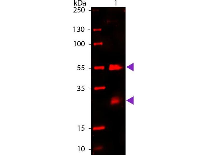 Anti-Rat IgG DyLight™ 680 has been tested by western blot and is designed for immunofluorescence microscopy, fluorescence based plate assays (FLISA) and fluorescent western blotting. The emission spectra for this DyLight™ conjugate match the principle output wavelengths of most common fluorescence instrumentation. -