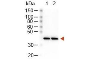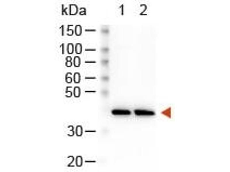 Store vial at 4° C prior to restoration. For extended storage aliquot contents and freeze at -20° C or below. Avoid cycles of freezing and thawing. Centrifuge product if not completely clear after standing at room temperature. This product is stable for several weeks at 4° C as an undiluted liquid. Dilute only prior to immediate use.