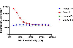 No known cross reactivity. No cross reactivtiy to mouse IgG, human IgG, goat IgG. Other species were not tested.