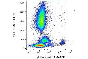 Immunoglobulin E (IgE) is a 180 kDa soluble protein serving as an antigen-specific unit of mast cell effector mechanisms. IgE has the lowest serum concentration of all immunoglobulins (approximately 0.5 mg/l) in healthy individuals, but upon allergen challenge its concentration in blood increases dramatically. Although biological survival of free IgE is very short (T1/2 = 2 days), it is stabilized after binding to its high affinity receptor. Unlike IgM- IgG- and IgA-committed B cells, IgE-switched B cells do not undergo clonal expansion.,Immunoglobulin E