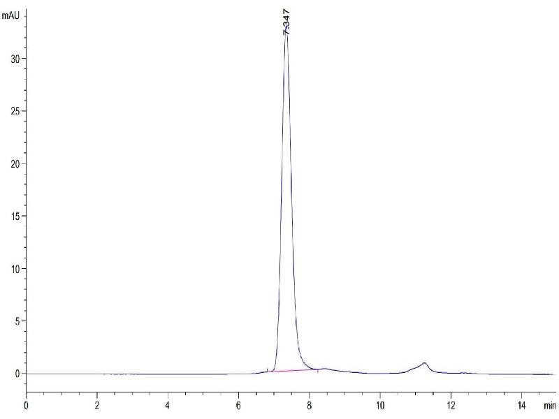 The purity of the protein is greater than 95 % as determined by SDS-PAGE and Coomassie blue staining.