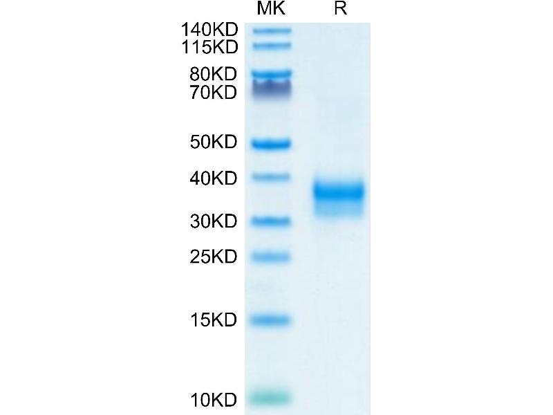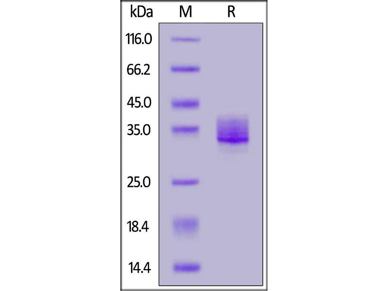 The purity of the protein is greater than 95 % as determined by SDS-PAGE and Coomassie blue staining.
