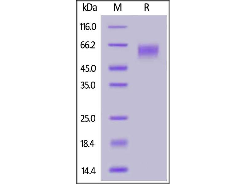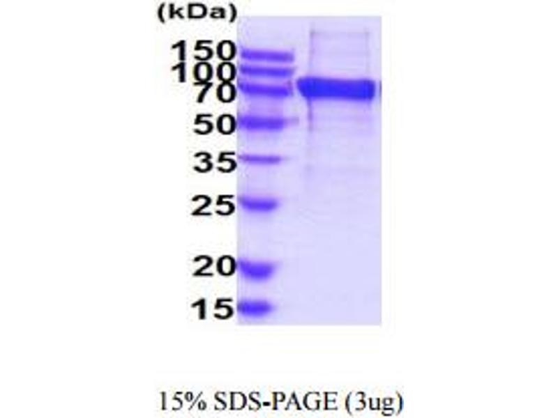 The purity of the protein is greater than 85 % as determined by SDS-PAGE and Coomassie blue staining.