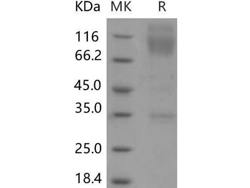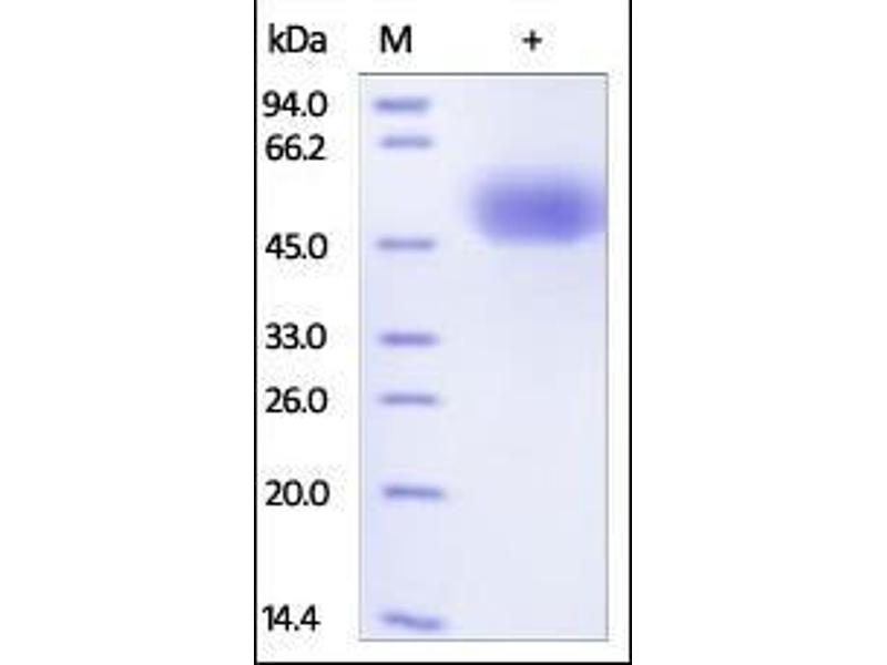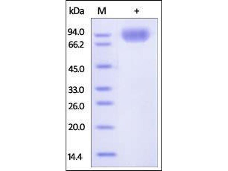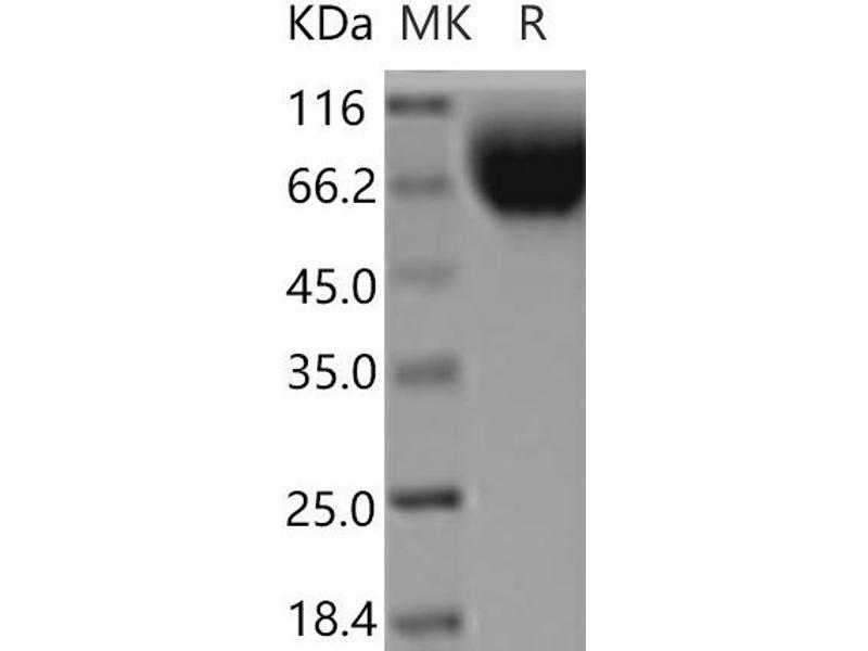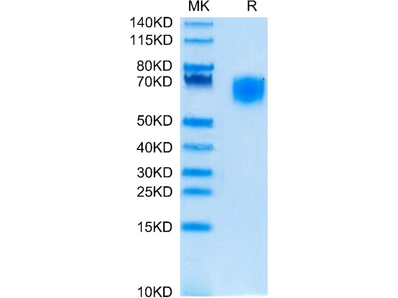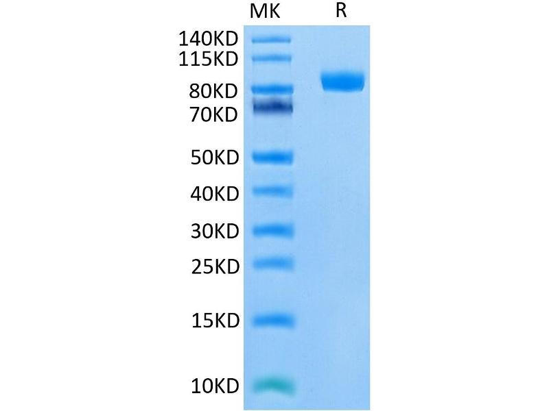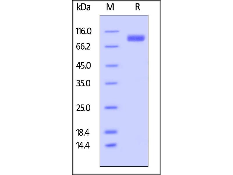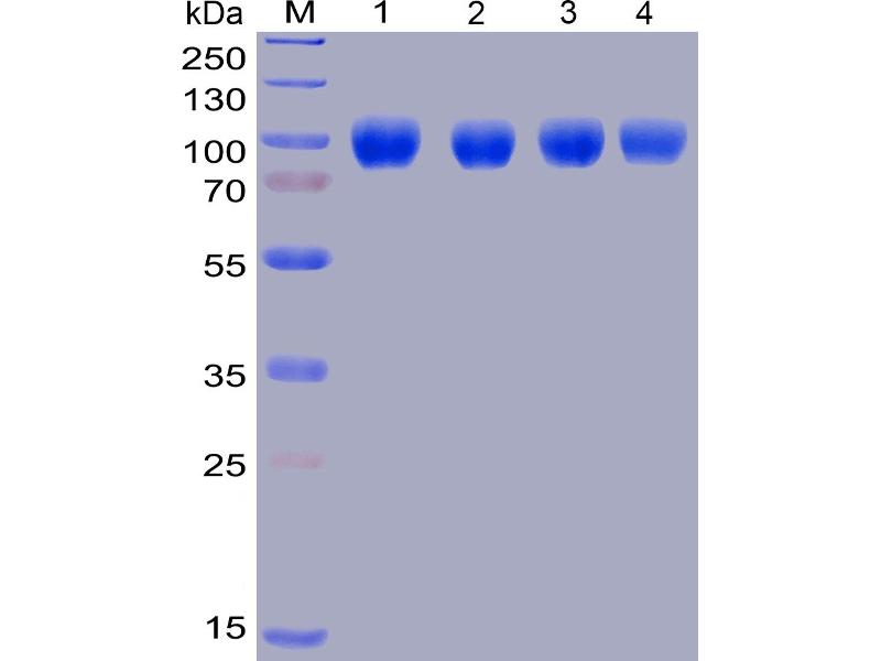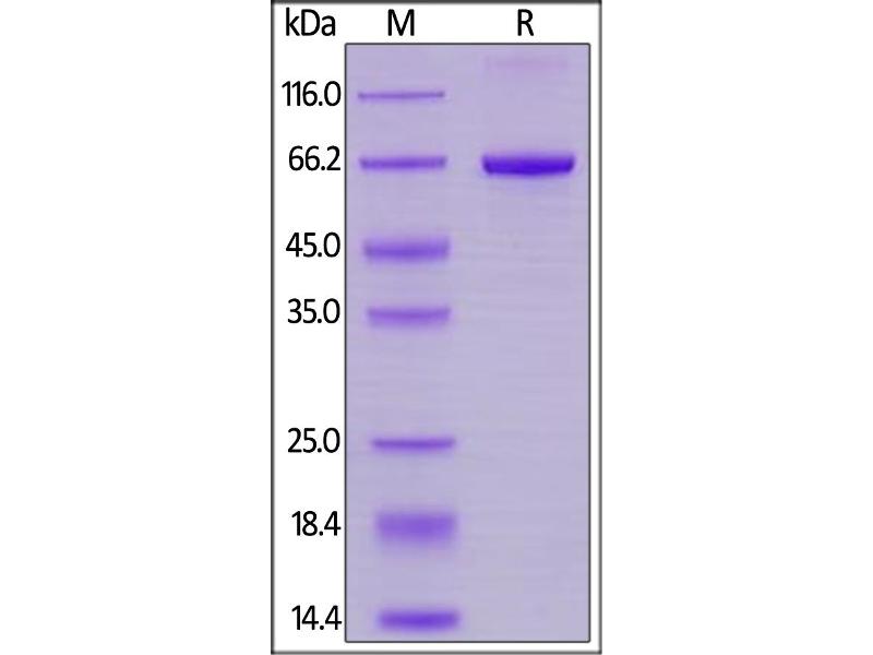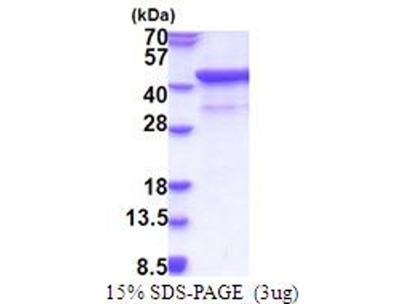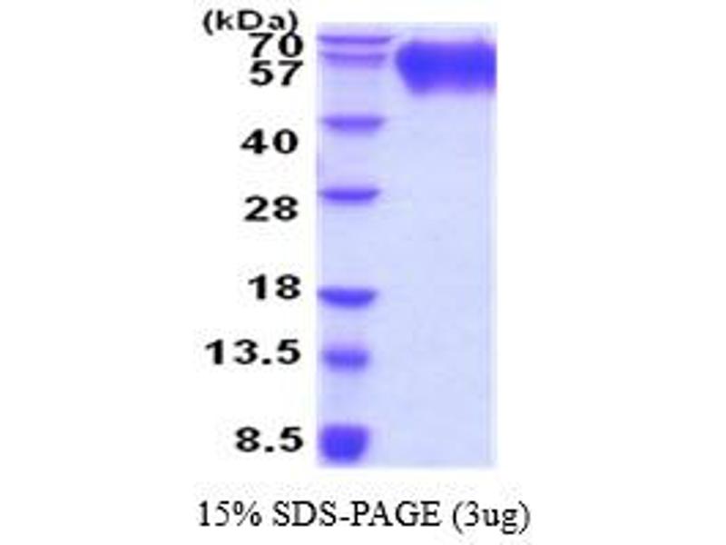 The purity of the protein is greater than 95 % as determined by SDS-PAGE and Coomassie blue staining.